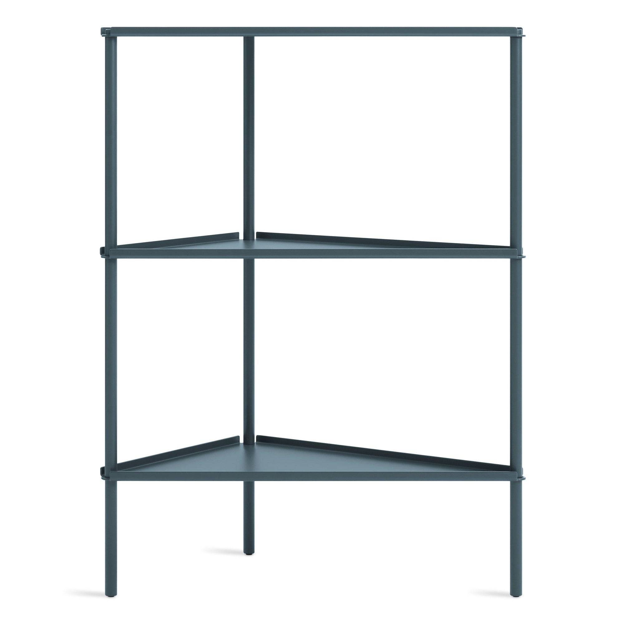 Tidy triangles whip your space into shape. Minimal powder-coated aluminum suits nooks and knickknacks. Available in neutral colors or bold shades, for those who dare to go there. Tuck into a corner and enjoy.