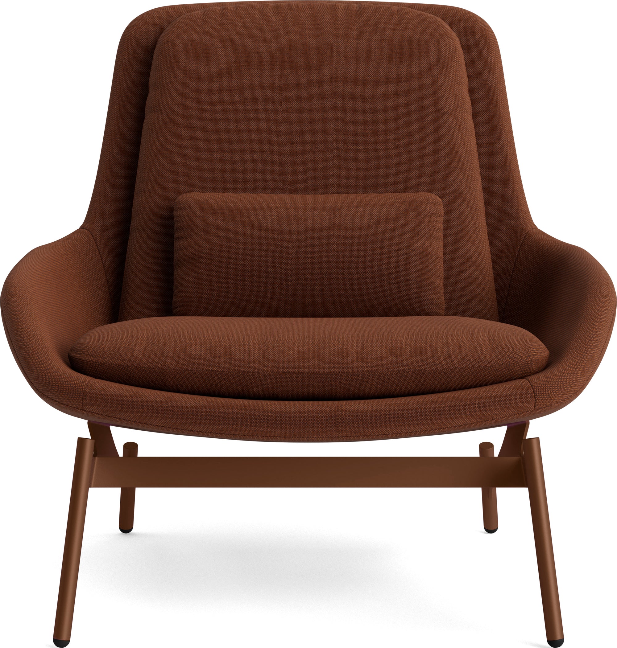 Shapely curves, a gentle recline and “just-right” cushions invite the lost art of unwinding. A sculptural powder-coated steel base sets up the striking profile. Field Ottoman also available.