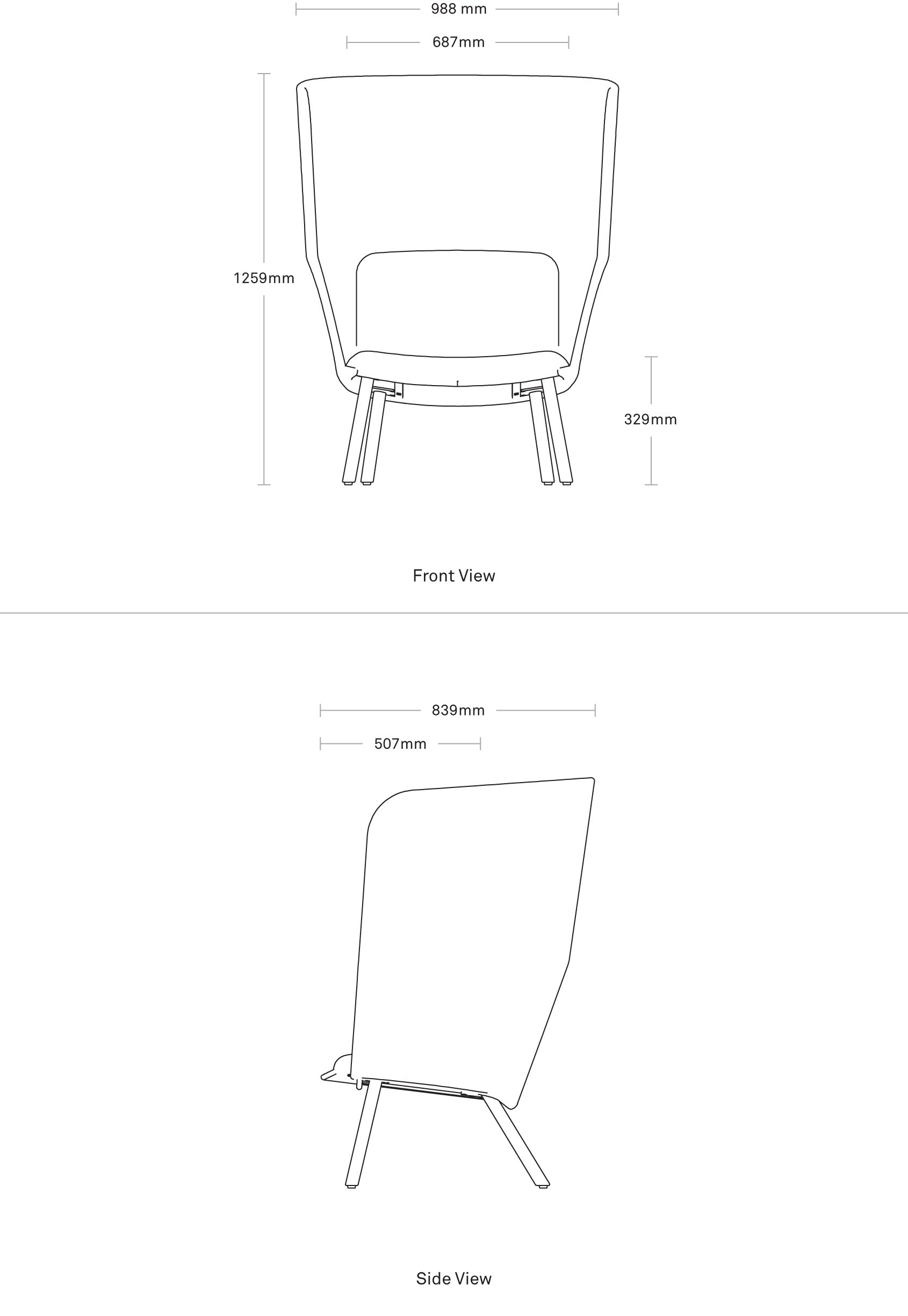 Hedge High Back fully supports your need for privacy. Soft fabric stretches to create a comfortable clandestine oasis for home or work. Faceted contours up the magnificence with a beautiful back detail. Tight seat and perfectly balanced cushions maintain tidiness and tranquility while you do your thing, no questions asked. Dainty powder-coated steel legs conspire to keep the form low and lovely.
