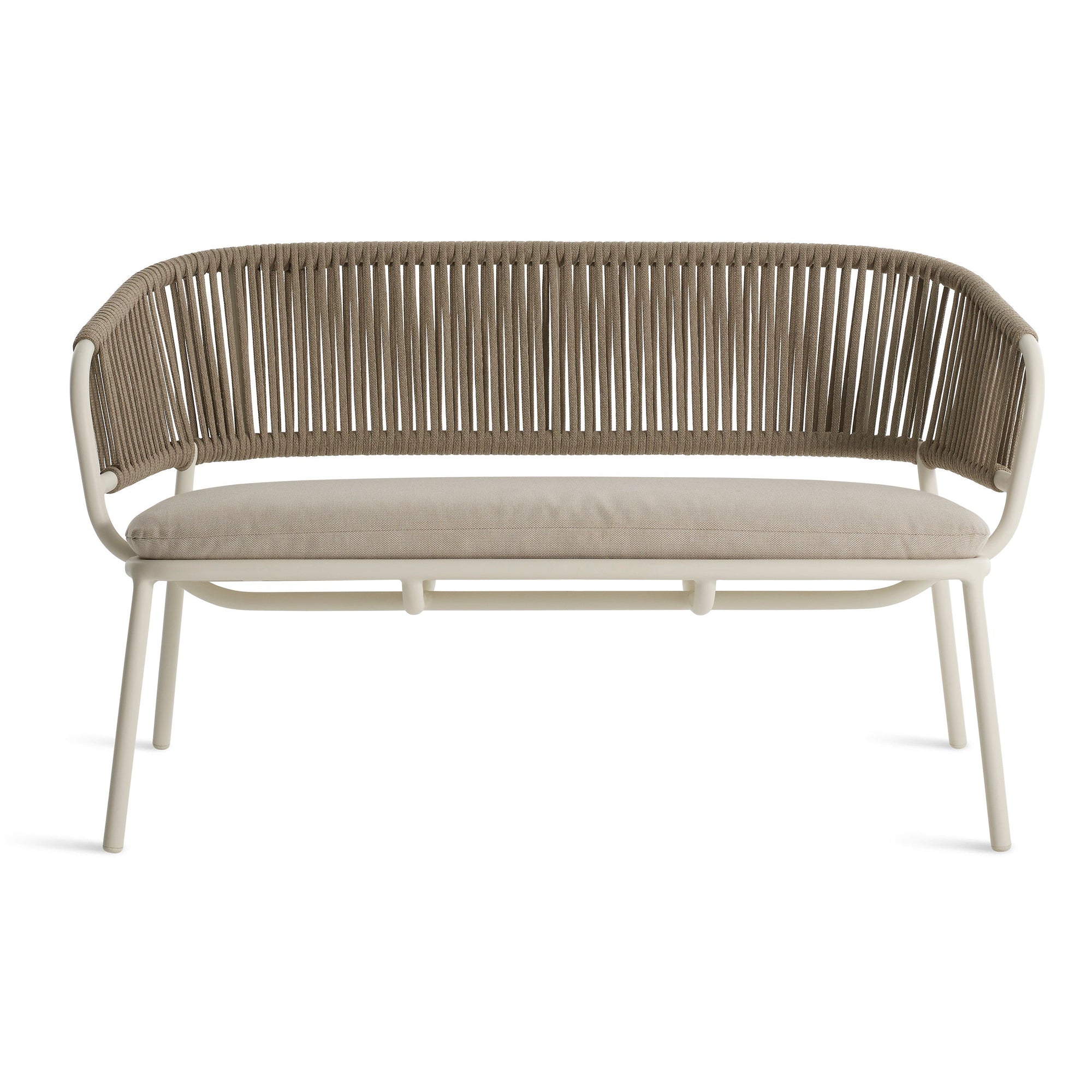 Even better with a buddy. Woven all-weather rope wraps a tubular aluminum frame to create a balance of texture, comfort and resilience. Sunbrella ® upholstered seat cushion is UV- and mildew-resistant. Proportioned for relaxation.