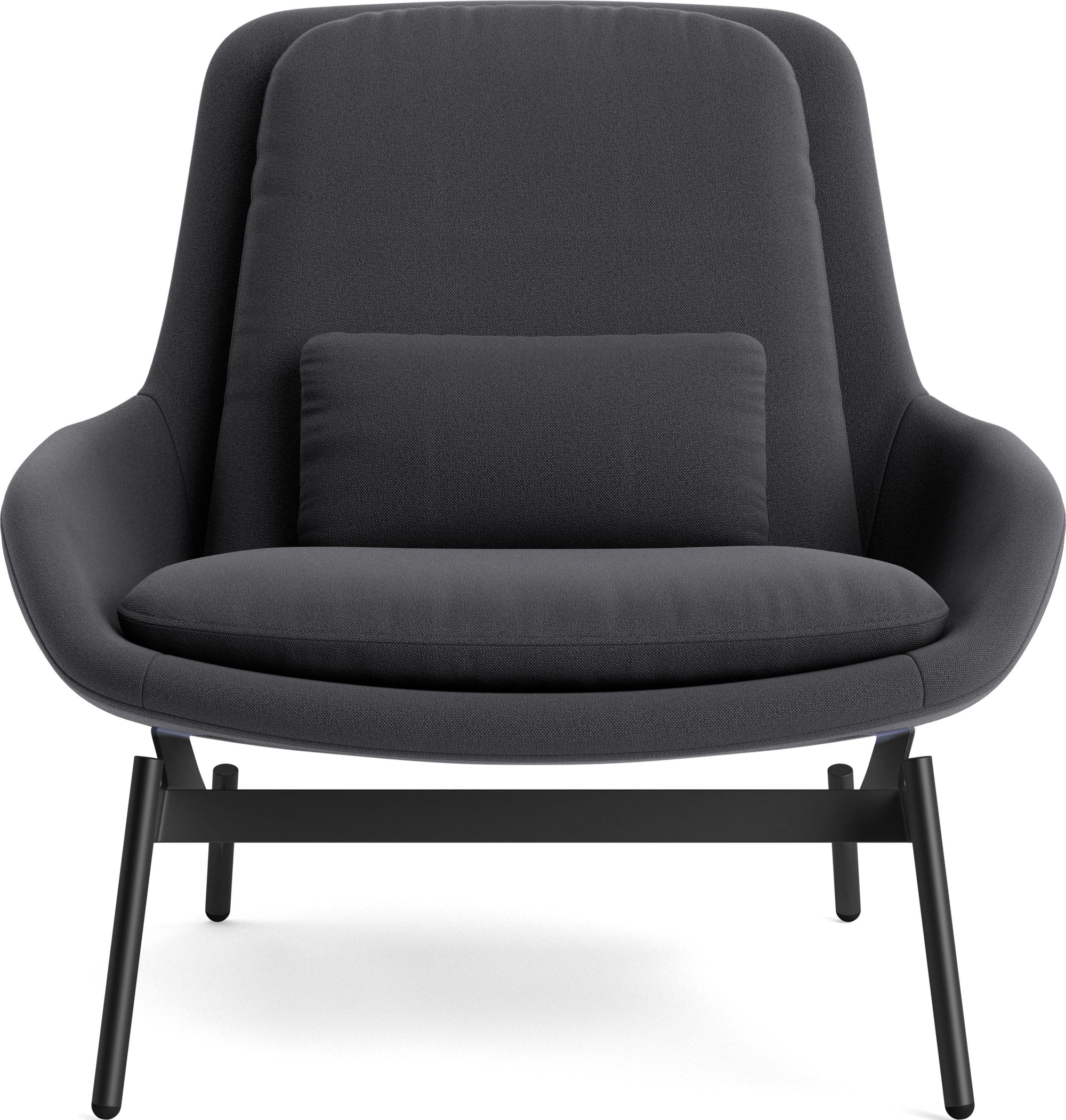 Shapely curves, a gentle recline and “just-right” cushions invite the lost art of unwinding. A sculptural powder-coated steel base sets up the striking profile. Field Ottoman also available.