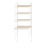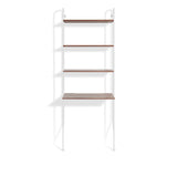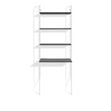 Powder-coated steel uprights and wood shelves in multiple finish options make you the master of your own book case destiny. We added a desk with the perfect work surface for even more choices. Single units stand alone. Gang up multiples to create mass appeal.