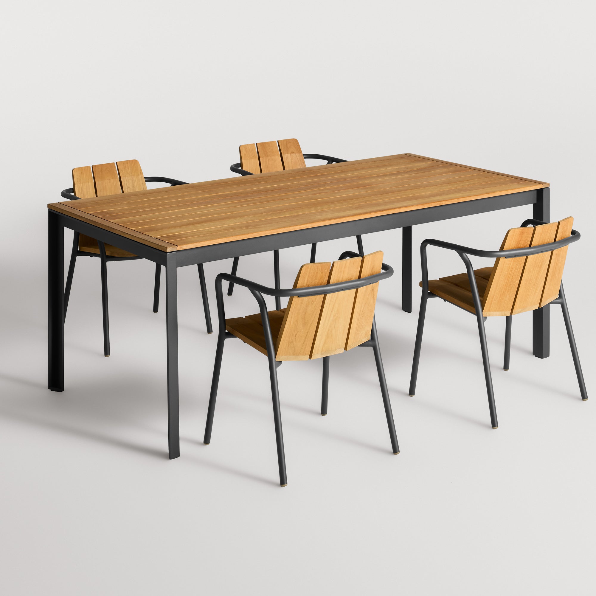 FSC-certified teak and powder-coated metal team up to take on the outdoor elements. Our Hold Tight 76" Outdoor Dining Table and Offline Chair celebrate teak's natural beauty and durability while providing a wide swath for your outdoor spread.