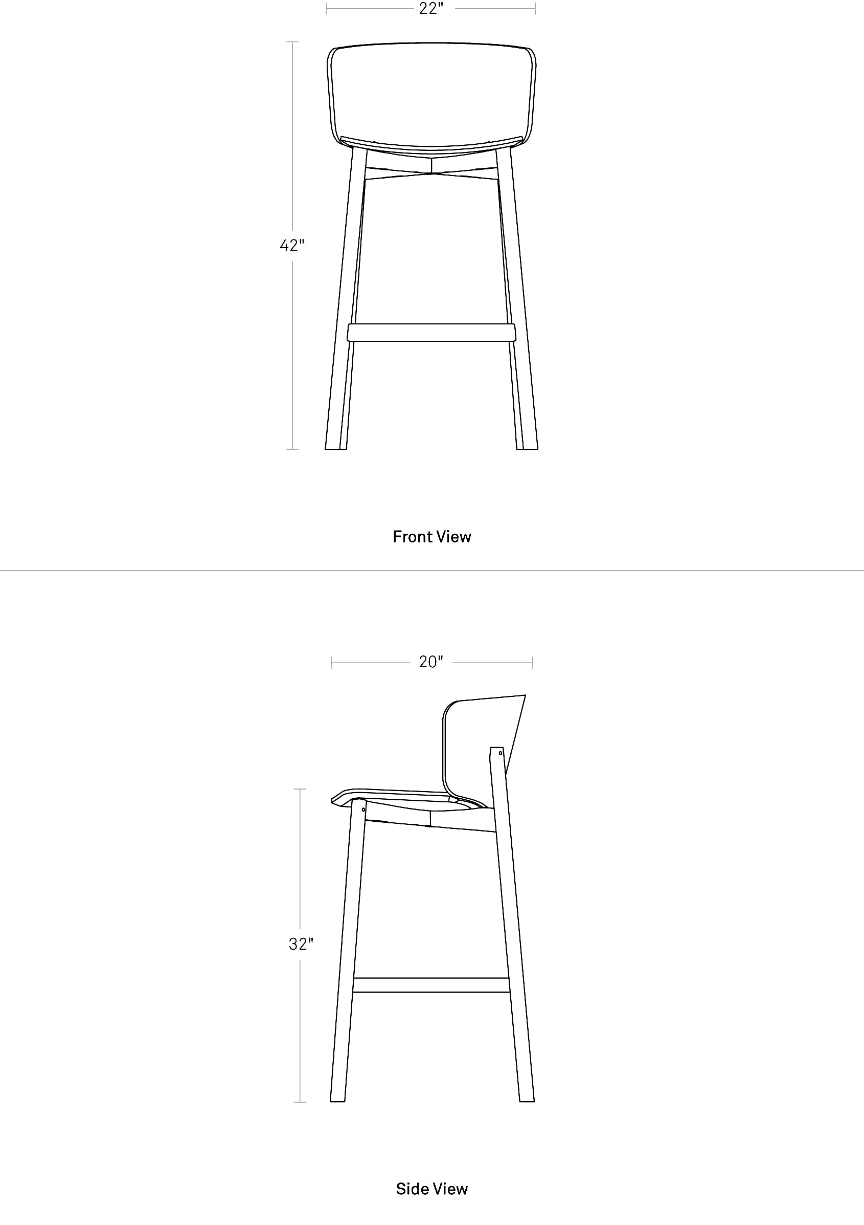 A wise person once said that wood is good. Buddy is here to prove it. A molded ply back wraps to hug and gently kiss a curved wood seat. Solid wood legs provide a sturdy and elegant base while subtle wood dowel details keep it all feeling special. Also available in dining chair.