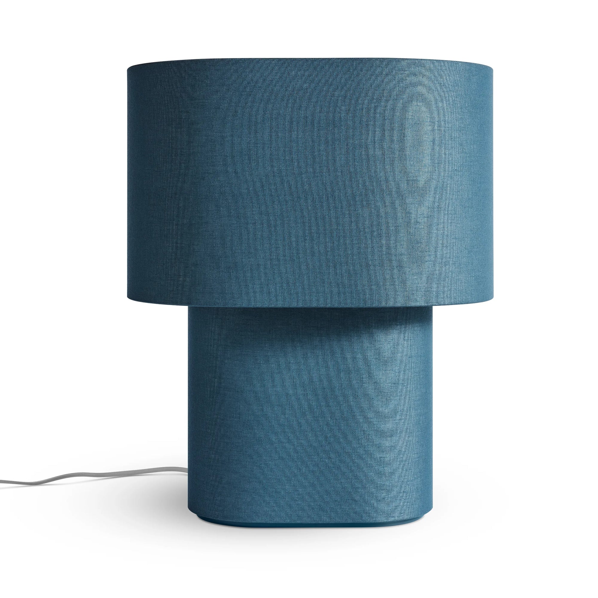 Soft linen shrouds a stout and sculptural form to create a glowing tabletop light source. Dimmable and delightful.