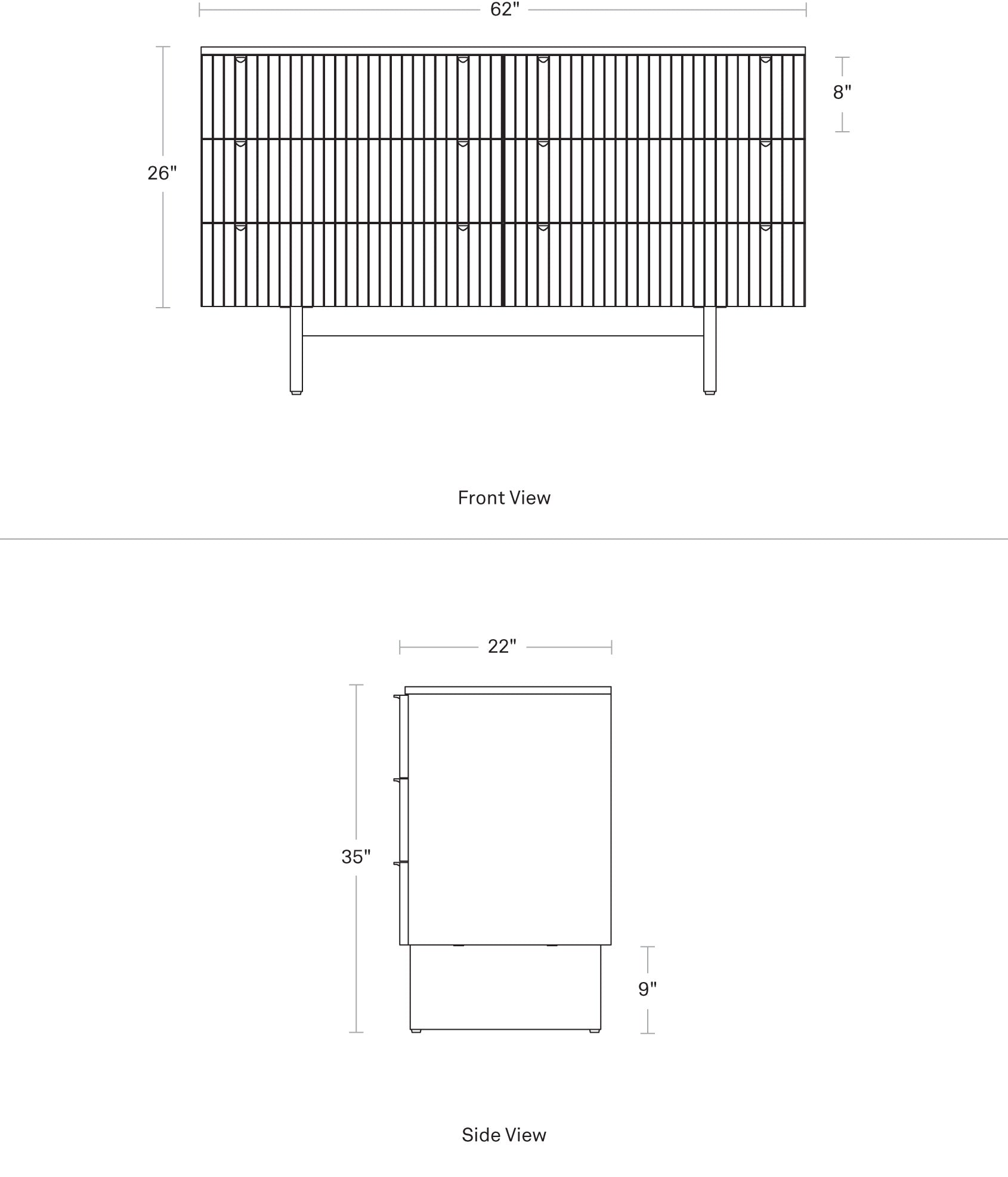 Murmur puts refined elegance front and center. Fluted wood creates a continuous pattern of textural delight. Small sandcast brass pulls nest in the grooves for subtle sophistication. Convex legs and soft-close drawers complete the pretty picture. Available in a whole slew of equally stunning shapes and sizes.