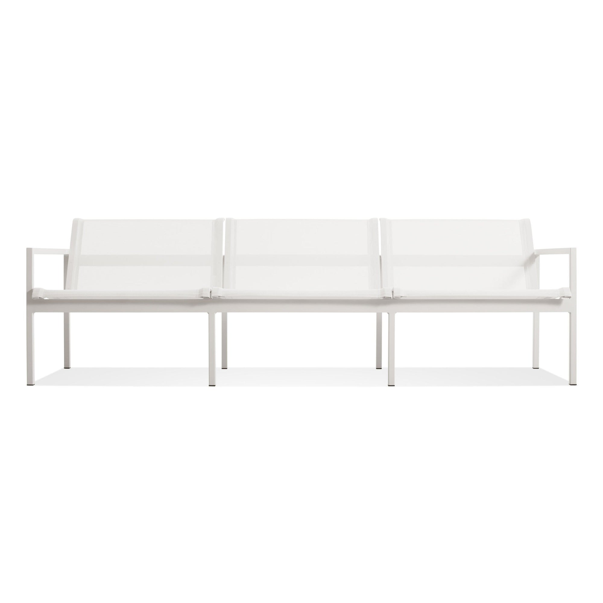 Crisp minimal powder-coated aluminum and Batyline textile. Clean lines designed to weather the elements.