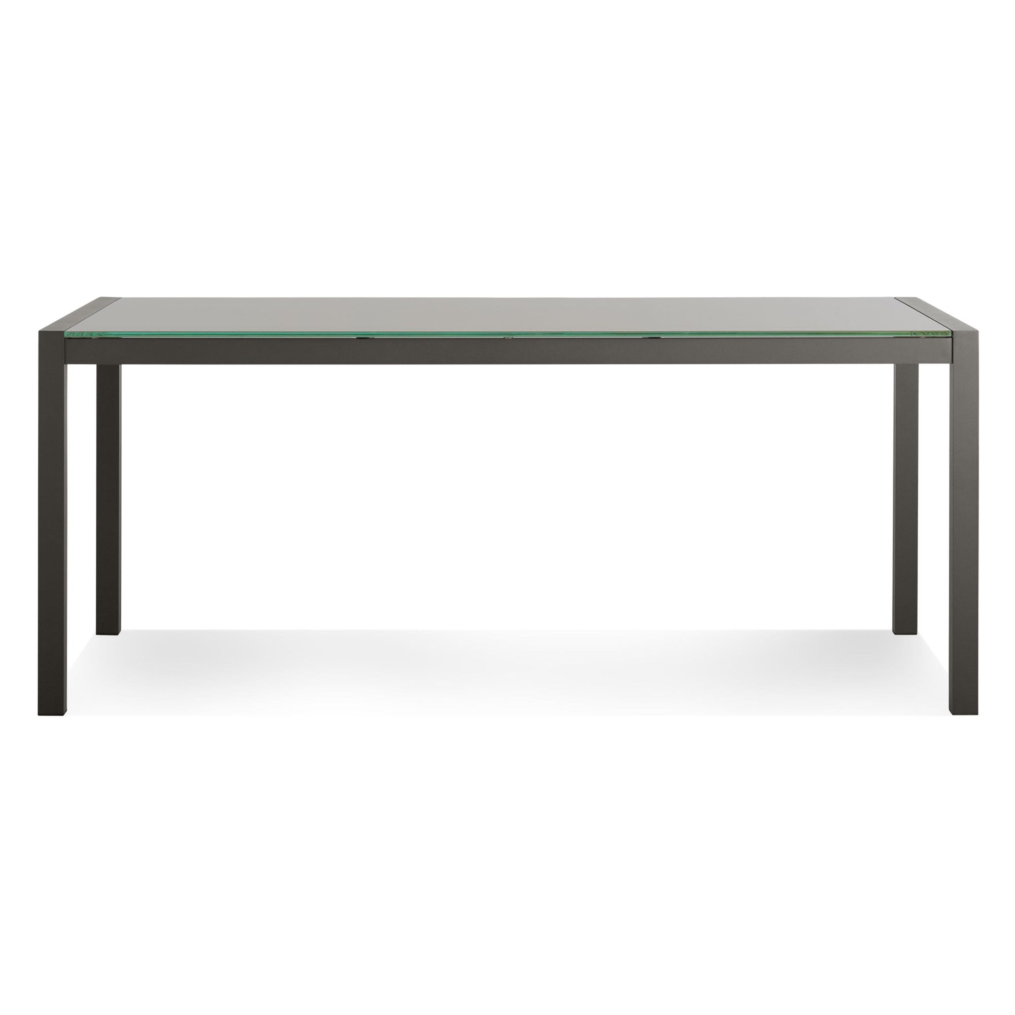 Crisp minimal powder-coated aluminum and tempered sandblasted glass. Clean lines designed to weather the elements.