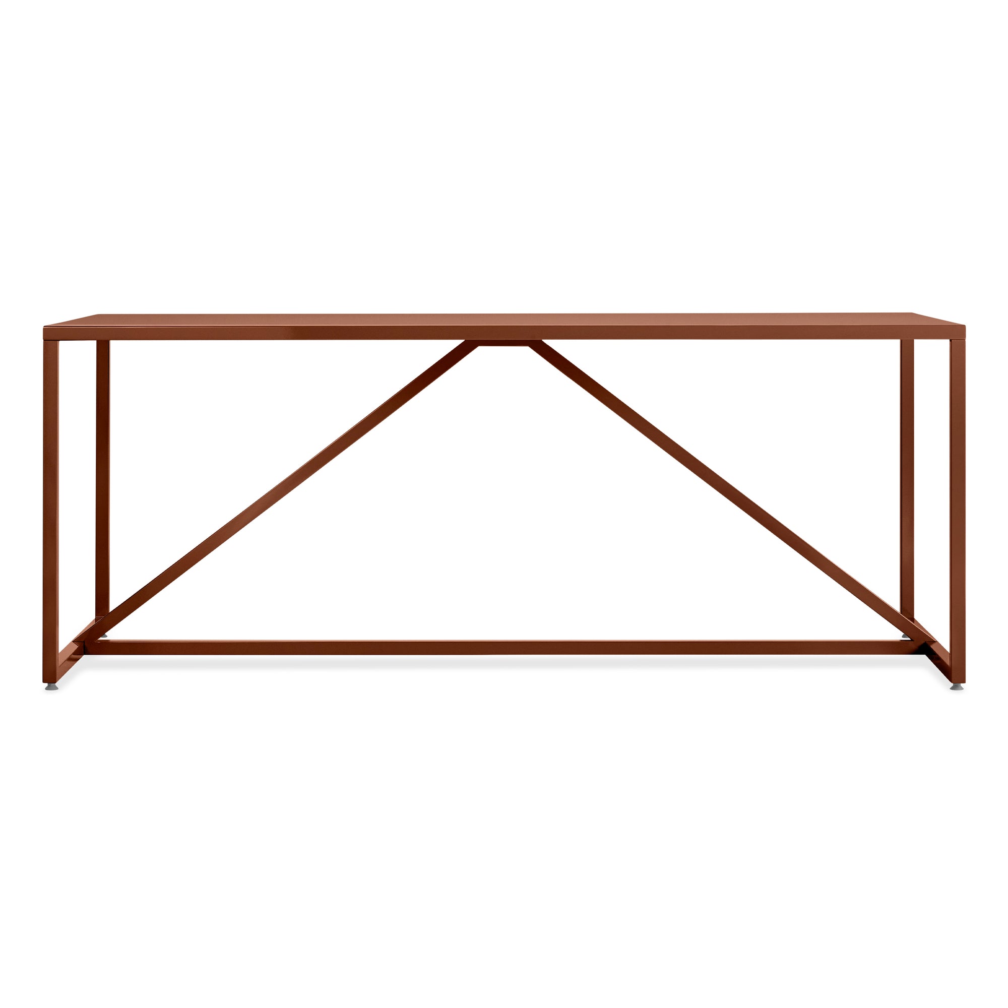 Sashay! Shantay! Strut works its architectural angles to the max. Ample work space, dining space or dance space. Powder-coated steel frame with polyurethane wood substrate top.